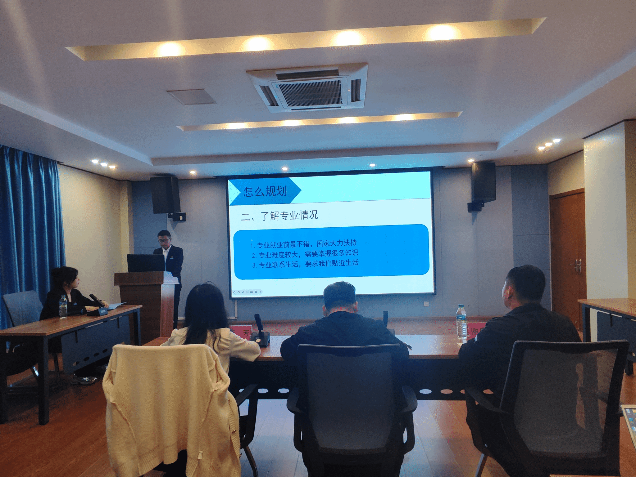 11月14日晚,PA视讯官网首届老员工学业规划大赛在逸夫水利楼B400精彩上演。公司党委副书记宋友根、员工工作办公室主任谢应兵、员工工作处员工管理科老师李芳出席并担任评委,比赛选手和全体班级学习委员参加此次活动。
